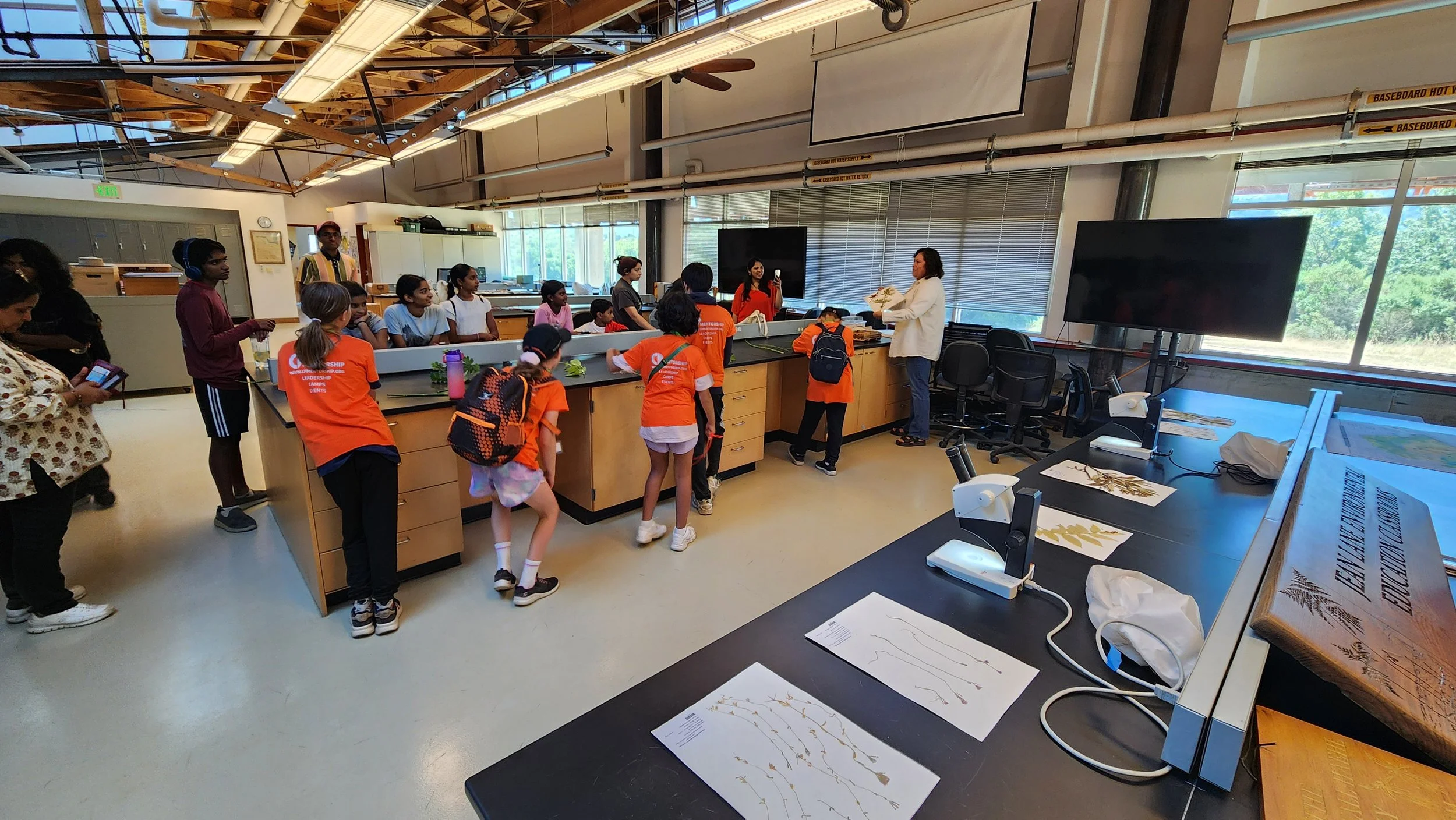 Our trip began with an opening activity led by the mental health support team, helping campers ground themselves and prepare for the week ahead. From there, we traveled to Jasper Ridge Biological Preserve at Stanford University, where Jorge, our trail guide, led a two-mile walk while teaching us about the local ecosystem. Campers collected plant samples along the way and later examined them under microscopes with the help of Adrianna, a resident botanist at the Jasper Ridge Research Facility. They also had the option to press the plants they found most interesting.